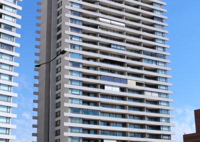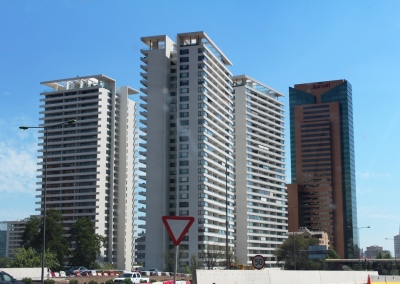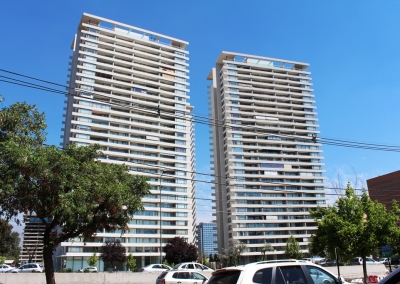 Las Condes, ChileConjuto de edificios de departamentos, en el que el cliente participó activamente en la selección de las líneas de ventanas más adecuadas tomando en consideración temas acústicos y térmicos.